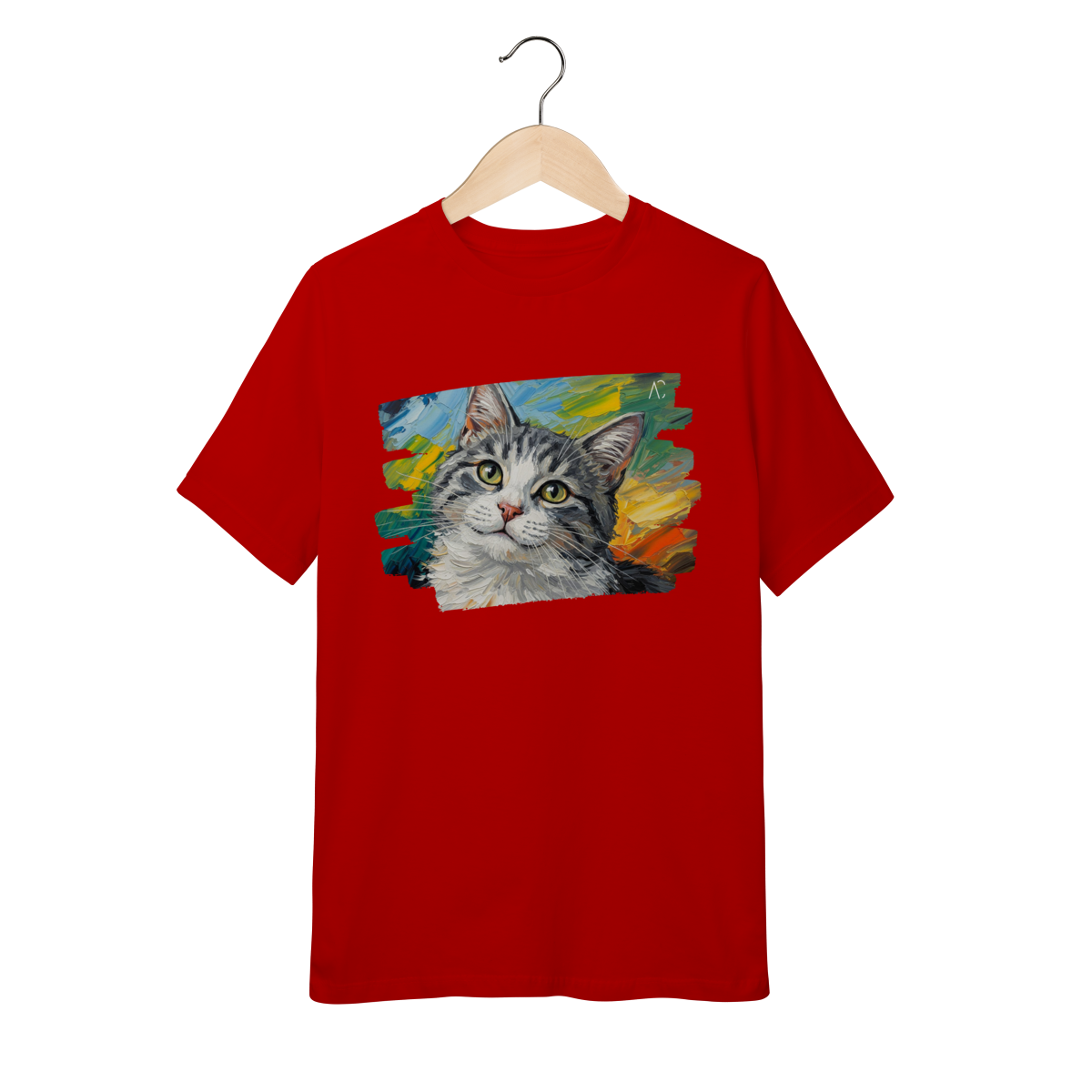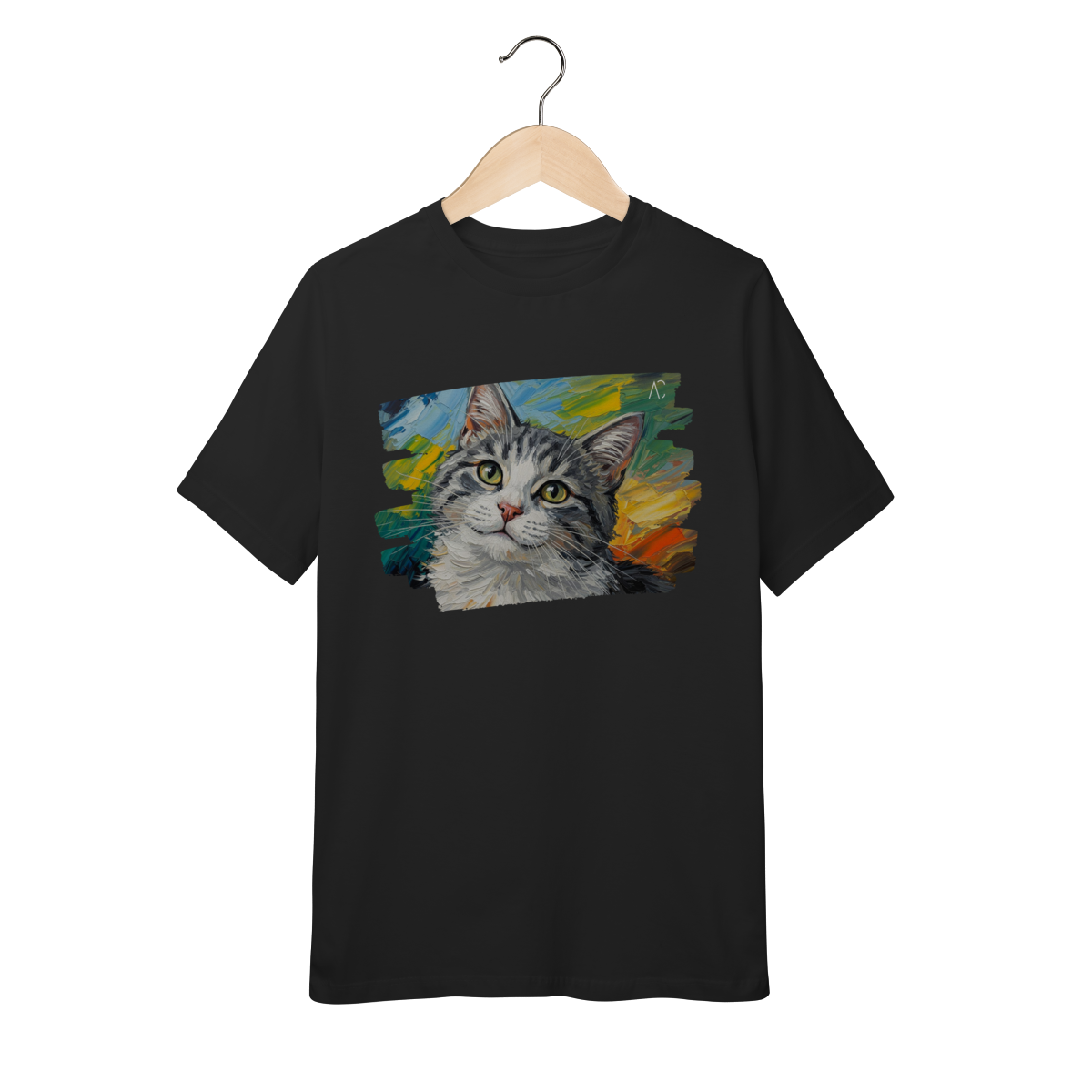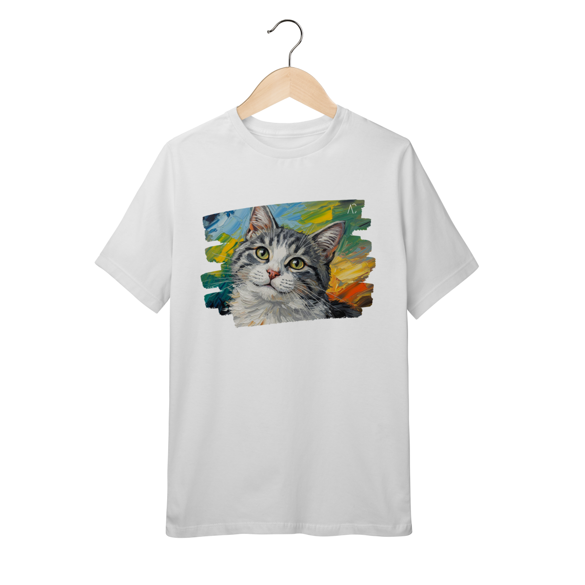 Nossa Camiseta Gatinho Aquarela é para quem ama gatos e arte, perfeita para dar um toque de estilo e personalidade ao seu dia.