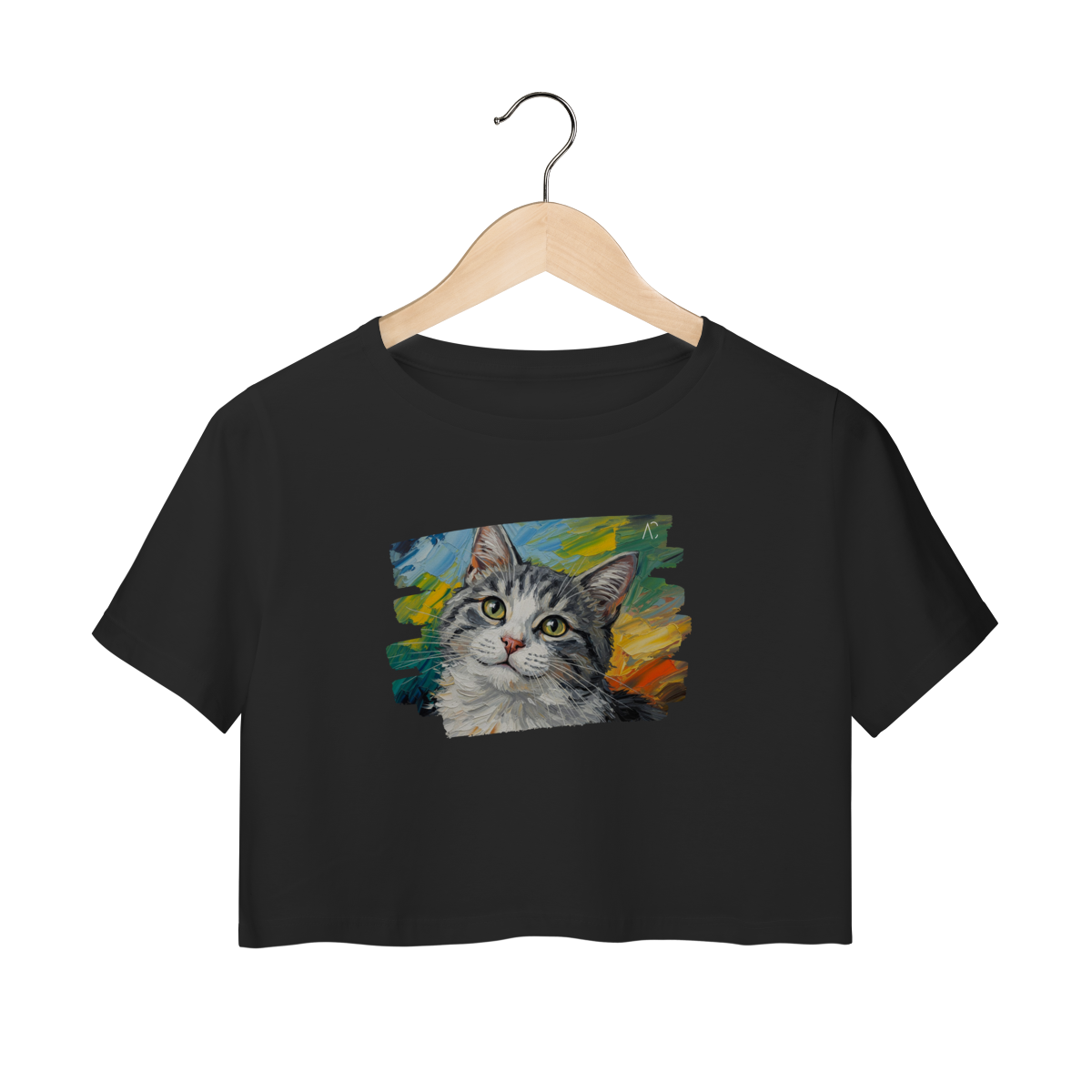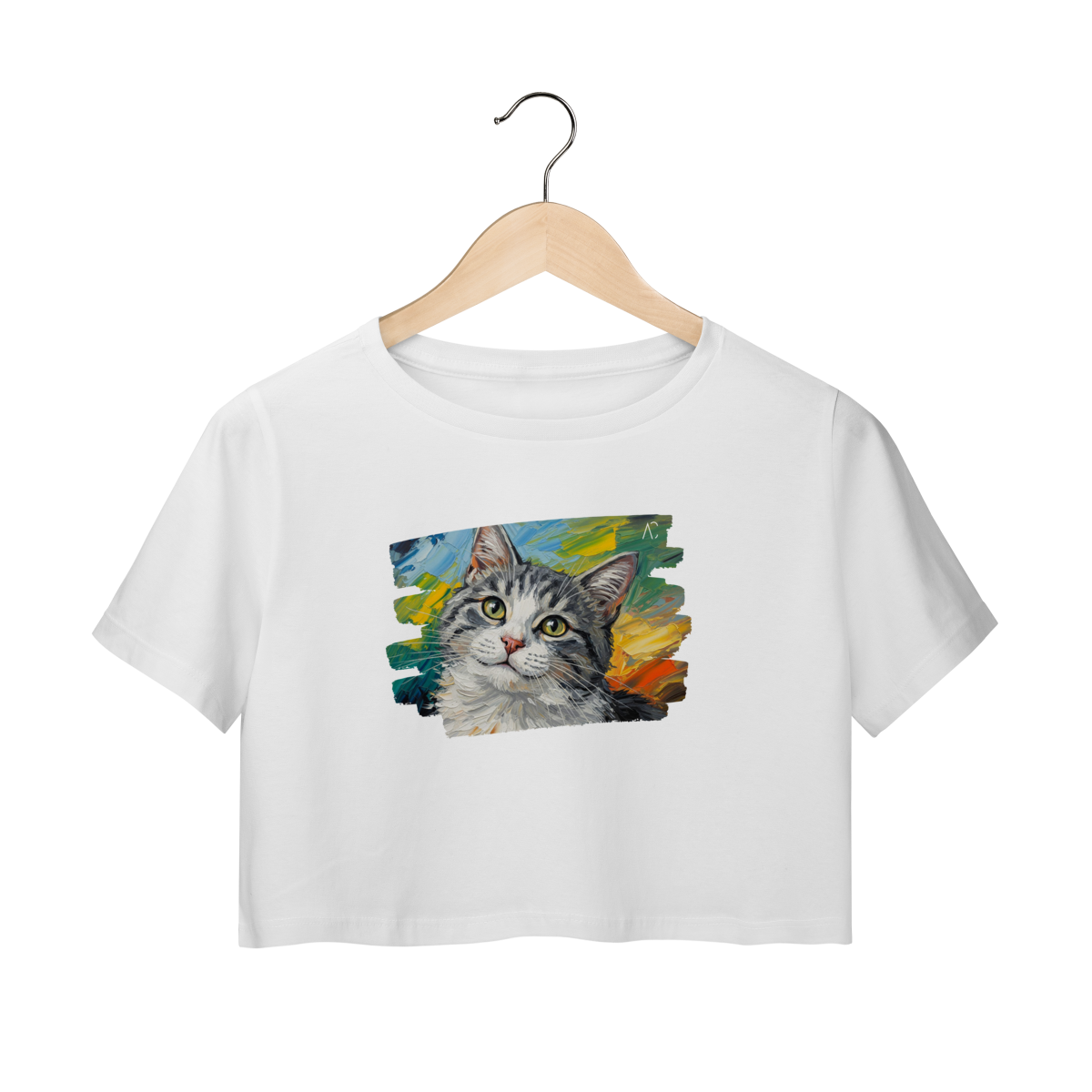 Nosso cropped Gatinho Aquarela é para quem ama gatos e arte, perfeita para dar um toque de estilo e personalidade ao seu dia.